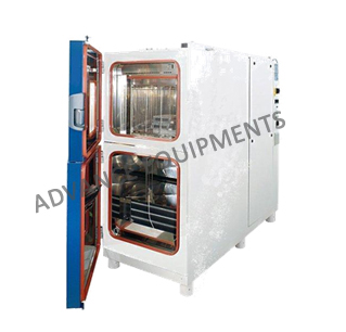 The extreme simulation of temperature is conducted in two zones of hot and cold that can be controlled independently and an optional third zone. The single basket product carrier moves vertically, from one zone to the other, subjecting the product to dramatic changes in temperature thus creating a temperature shock thereby detecting specimen flaws.